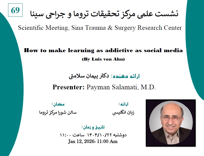 Research Deputy, Sina Trauma and Surgery Research Center, Tehran University of Medical Sciences, Tehran, Iran