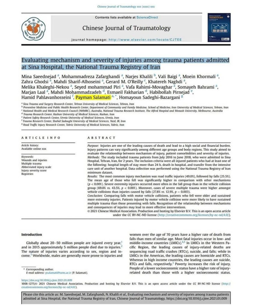 Evaluating mechanism and severity of injuries among trauma patients admitted to Sina Hospital, the National Trauma Registry of Iran
