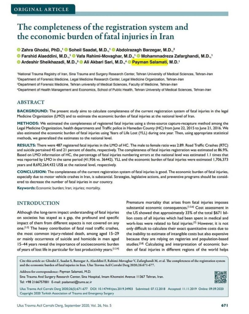 The completeness of the registration system and the economic burden of fatal injuries in Iran