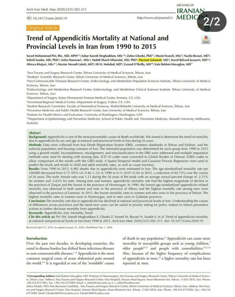 Trend of appendicitis mortality at national and provincial levels in Iran from 1990 to 2015